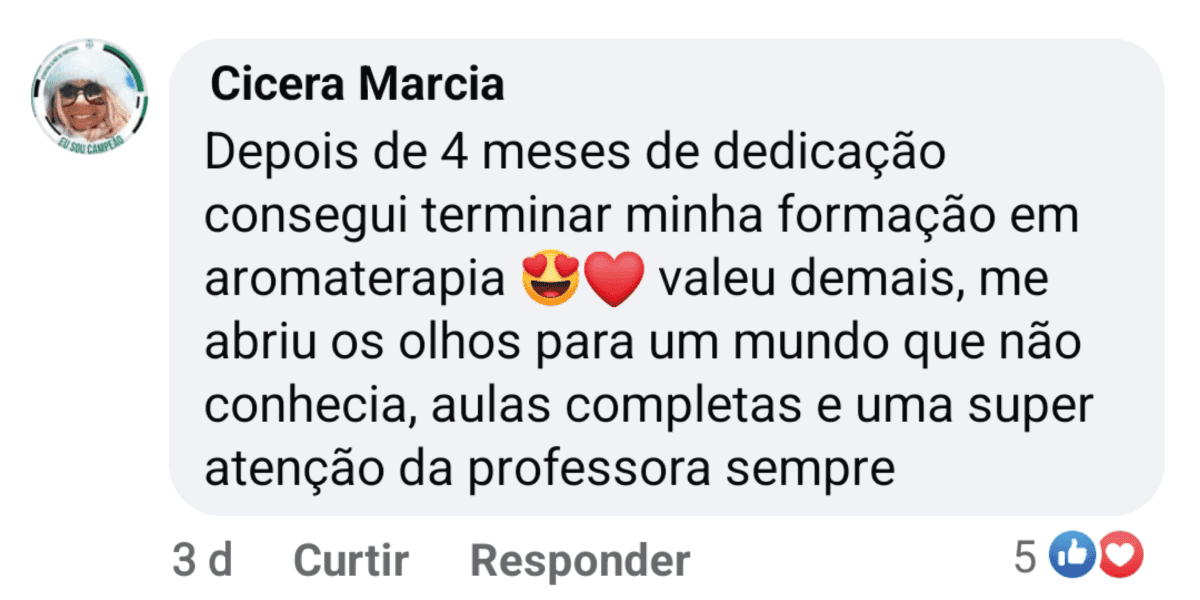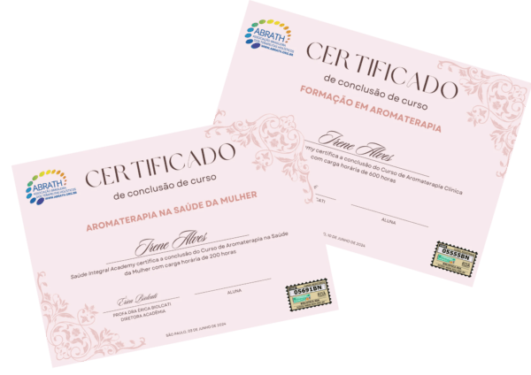 Imagine-se como um Aromaterapeuta Profissional Certificado, transformando vidas com o melhor da Natureza e encontrando satisfação em uma carreira que não só preenche seu coração como também oferece excelente remuneração. Nosso curso te guiará em cada passo até que esteja pronto para realizar atendimentos como um Aromaterapeuta Clínica. Além disso, ao concluir a formação você receberá um 2 CERTIFICADOS VALIDADOS E REGISTRADOS, garantindo seu reconhecimento profissional, permitindo que você atue, diagnostique e INDIQUE os óleos essenciais em qualquer lugar, enriquecendo sua carreira e vida financeira.